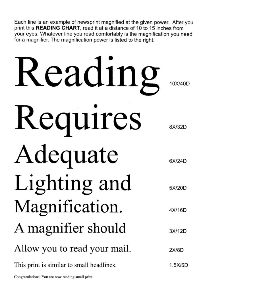 Print This Chart to determine which magnification is best for you