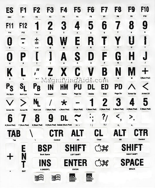 Stick-Ons needed for either PC or Macintosh keyboards. The letters can also be used to mark other products for better visibility.
